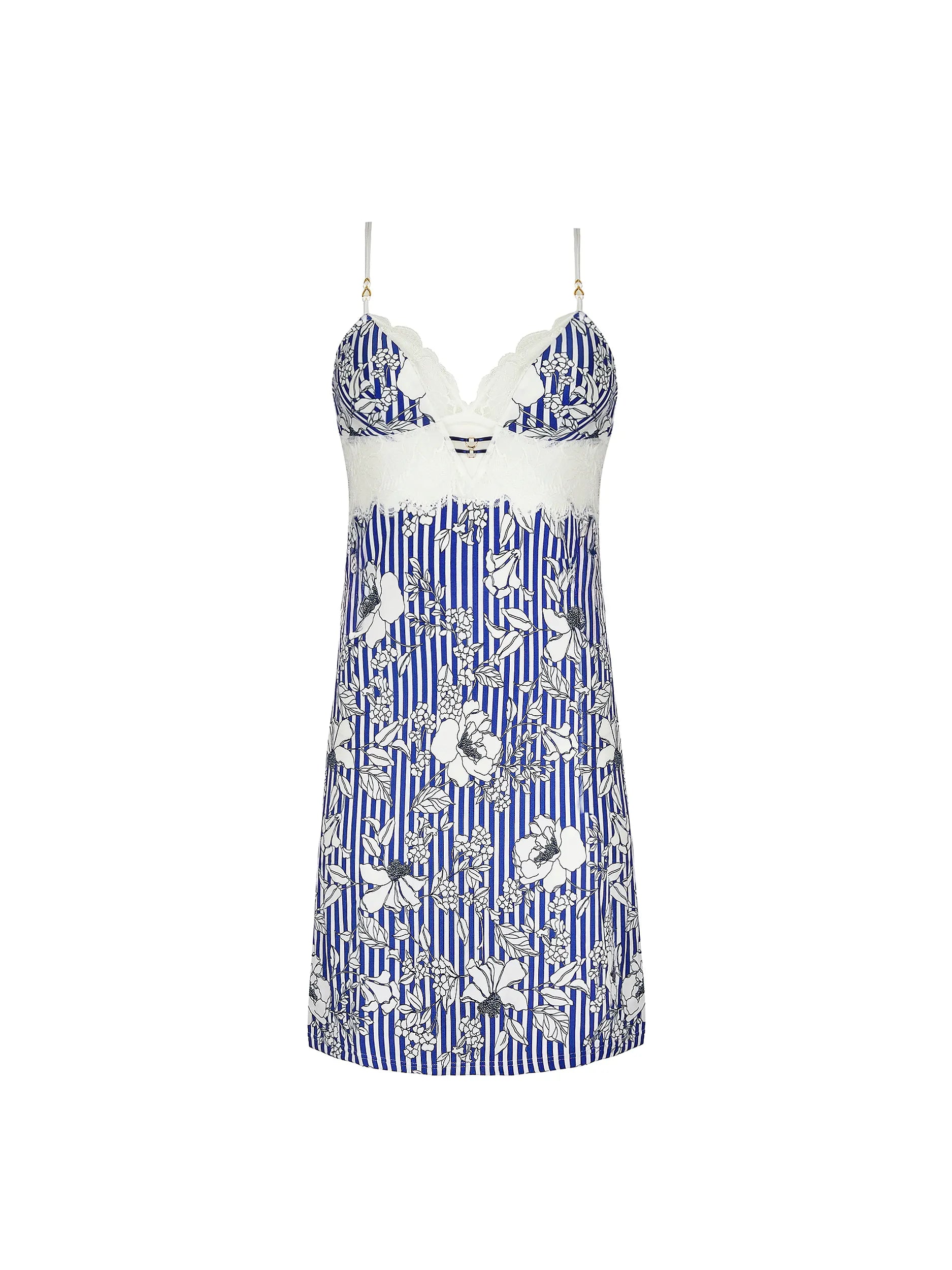 Exuding the essence of marine beauty, Cap Au Levant by Lise Charmel puts a fresh spin on a timeless wardrobe essential, blending the sophistication of sailor stripes with the ethereal touch of delicate floral embroidery and the allure of exquisite lace.