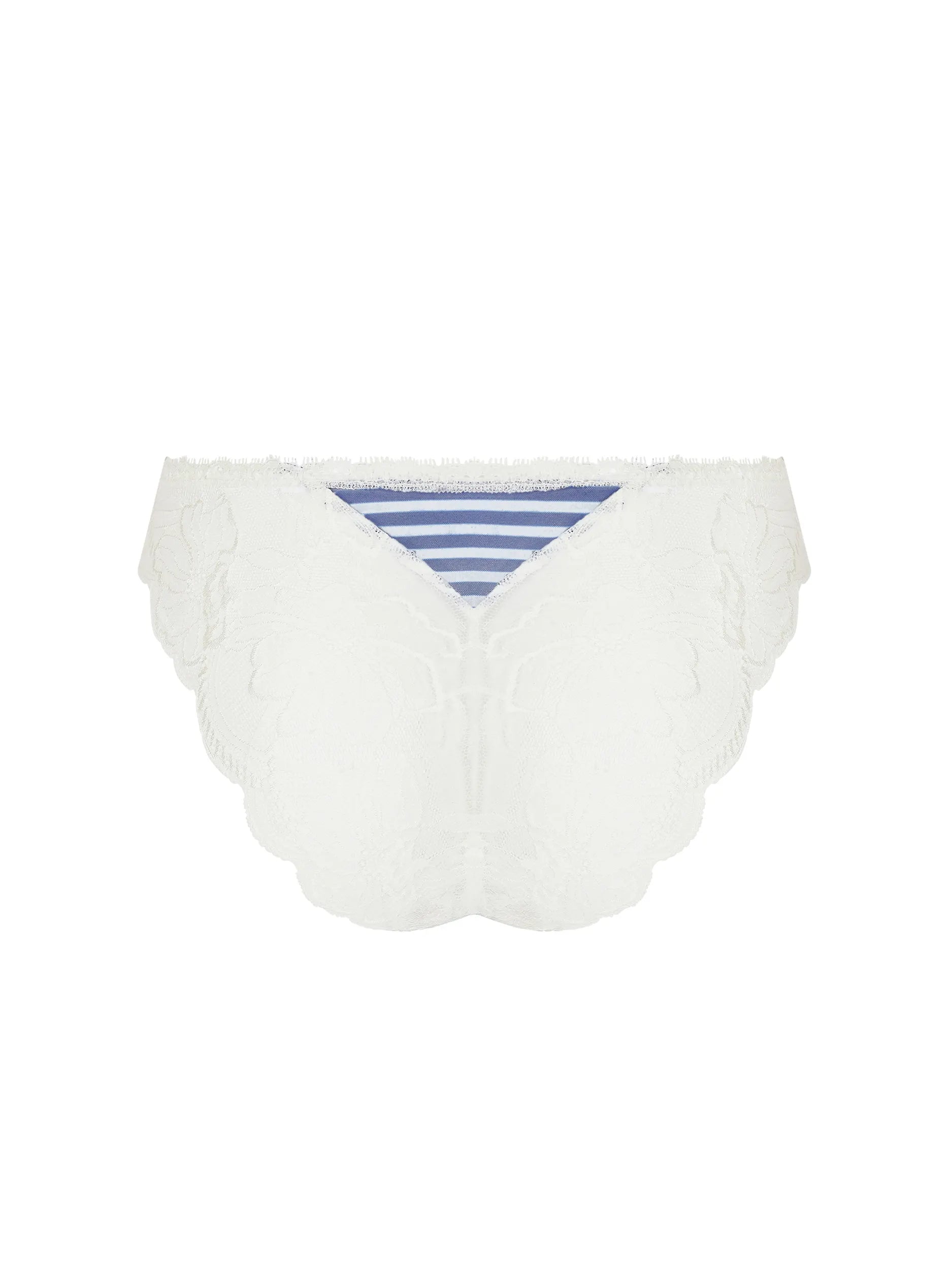 Exuding the essence of marine beauty, Cap Au Levant by Lise Charmel puts a fresh spin on a timeless wardrobe essential, blending the sophistication of sailor stripes with the ethereal touch of delicate floral embroidery and the allure of exquisite lace.