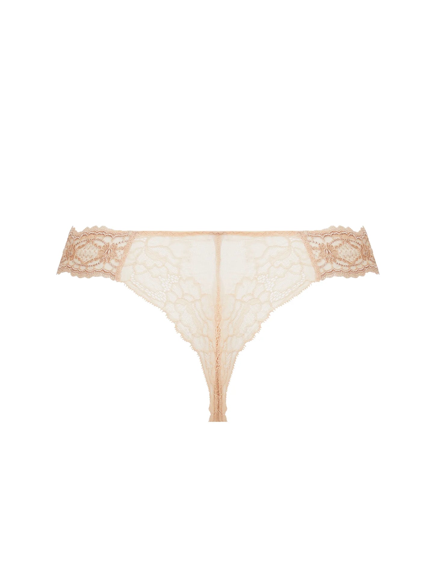 This exceptionally crafted thong from the Sublime En Dentelle line by Lise Charmel offers a high-end, sophisticated, and appealing look. Combining opulent Italian embroidery and a delicately fashioned Calais-Caudry® Leaver lace in lustrous filaments, this lightweight, stylish panties artfully exposes the skin while reflecting light in beautiful hues. Authenticated Leavers Loom Dentelle de Calais-Caudry® lace comes included with a certificate.