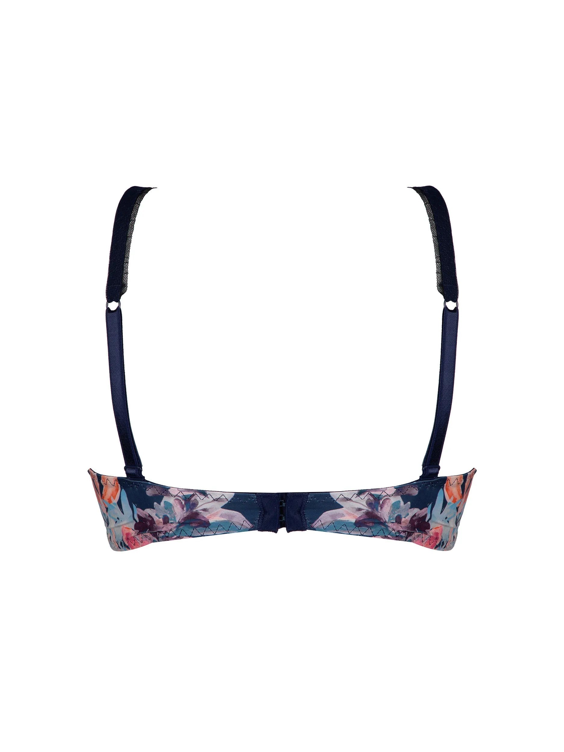 The Mille Pétales collection by Antigel features an abundance of delicate petals, reminiscent of an aquarelle painting. Experience a luxurious softness in the romantically modern shades of this collection. The Mille Pétales non-wired bra offers a seductive silhouette with its satin sheen and petals pattern, creating a sensual and feminine look.