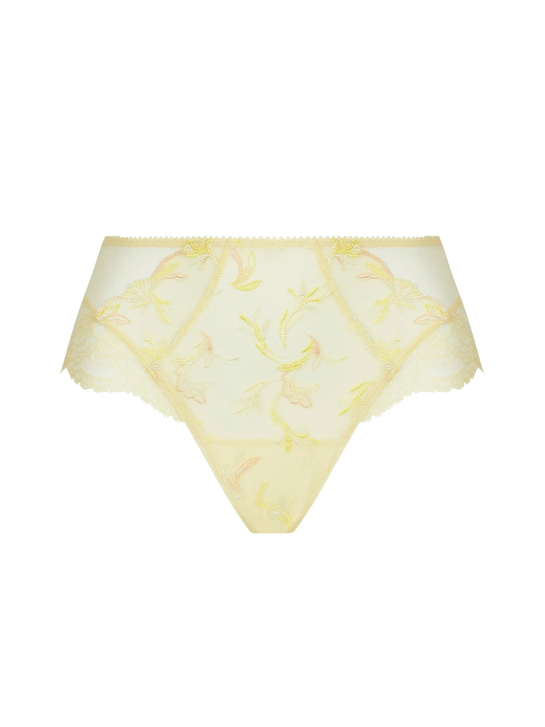 This elegant shorty from Lise Charmel’s Frisson D’Or line exudes refinement and charm. Crafted from delicate lace, it features intricate multi-thread embroidery on the front and sheer ultra-fine tulle at the back, offering a lavishly detailed look. The scalloped trims, low-rise fit, and shorty-style back gracefully accentuate your curves, delivering a stunning and flattering silhouette.