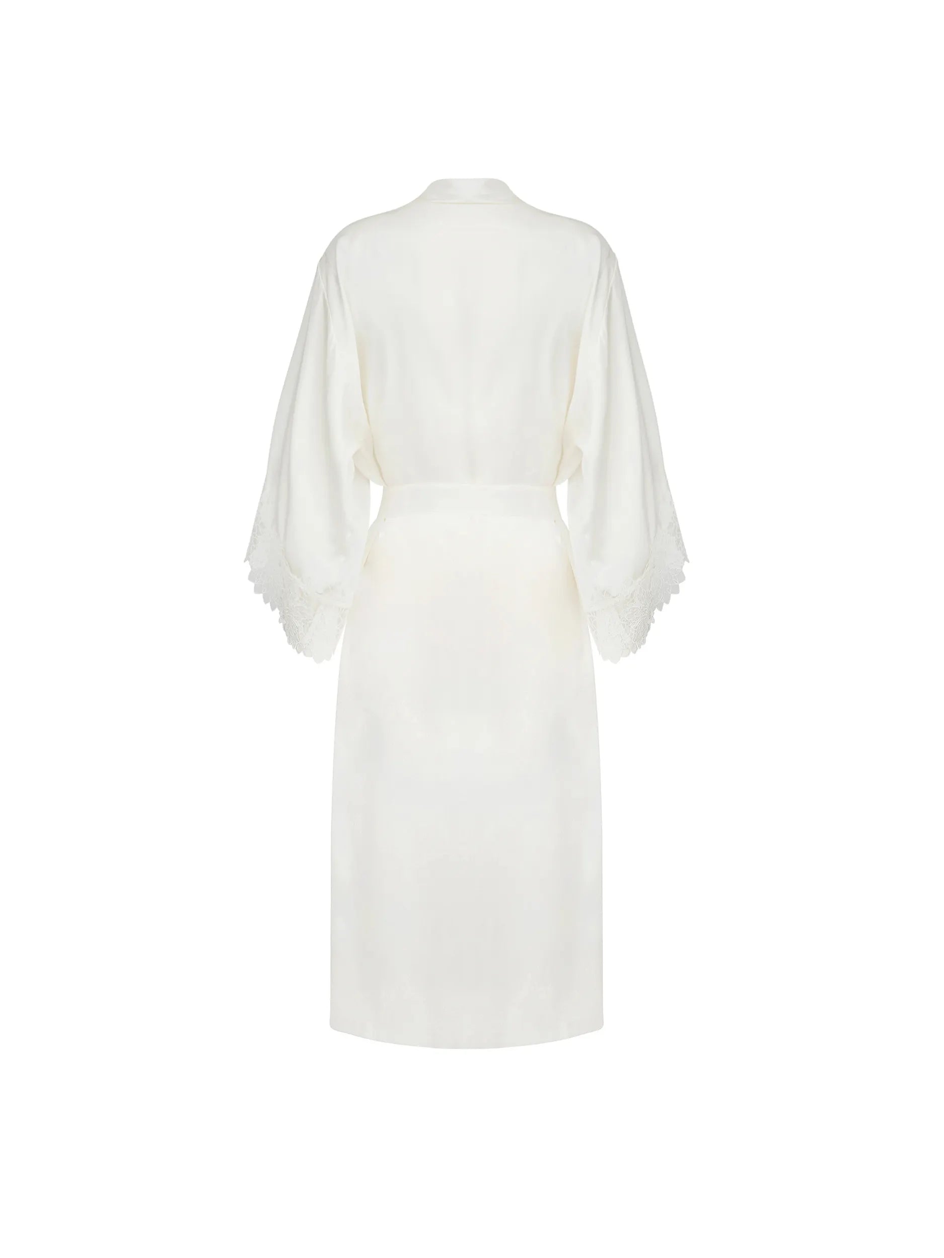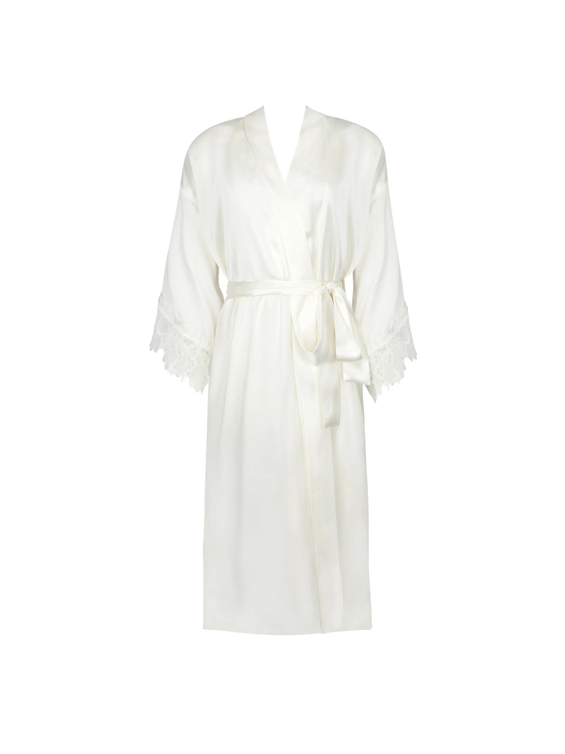 Experience a floral and romantic escape with the stunning Princesse Iris collection by Lise Charmel. Delicately detailed embroidery enhances your silhouette with a subtle glow, exuding irresistible sensuality. This elegant silk robe offers a refined sense of luxury, combining exceptional stretch with supreme comfort. Crafted from pure silk, the fabric shimmers beautifully under light, adding a touch of radiant sophistication.